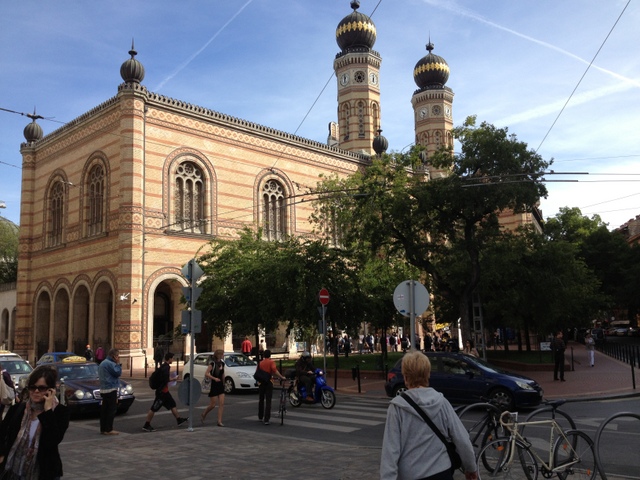 The Great Synagogue, the largest in Europe, was built in the 1850s. This beautiful building stood at the edge of the Budapest Ghetto during WWII, was bombed by the Arrow Cross, used as a stable by the Germans, pounded by Soviet artillery in the Siege and then rebuilt with public and private funds in the 1990s.