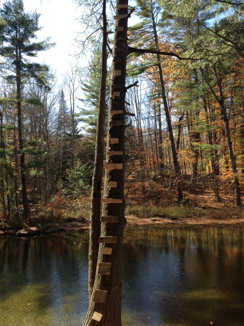 This is new. A ladder only teenagers would climb that leads to a rope swing dropping you about 20 feet into the water. Crazy local kids.