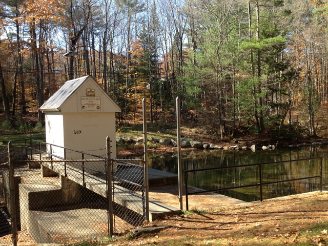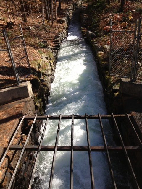 This is the Great East Lake dam. We used to ride over here with all the kids, sometimes at midnight, and we would climb up and jump from the flat roof into the channel to the right. The authorities, naturally, have since put a pitched roof on the building to discourage this kind of silly, adult supervised fun