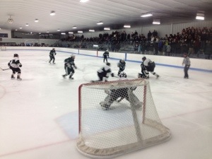 The game was great. The players, especially the Rams, were all hustle. Marshfield was noticeably quicker to the puck and the D-Y defense was very tentative.