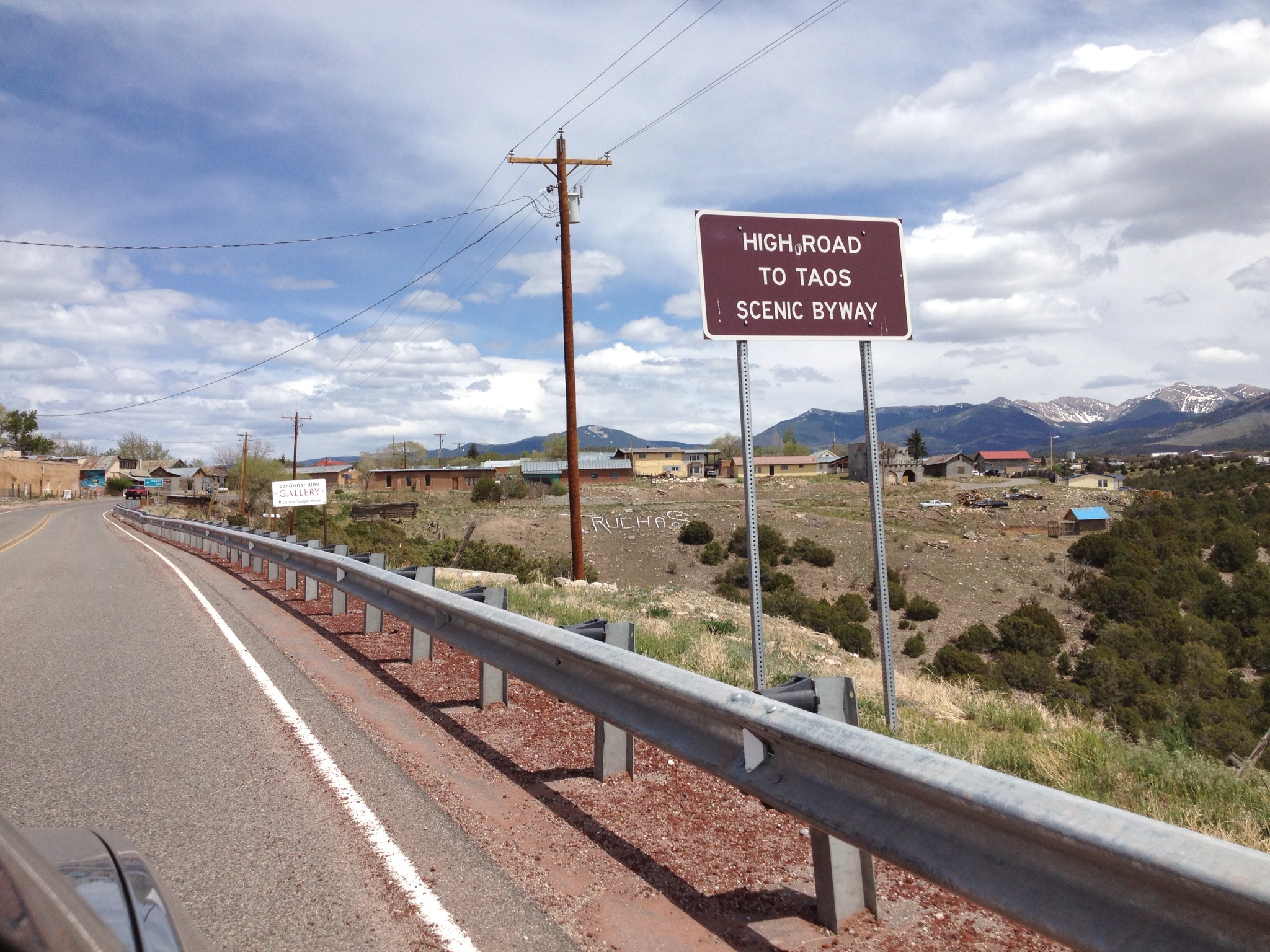 Twelve hours after we woke up, we finally arrived in Santa Fe, got the rental Dodge Avenger and started the 65 mile drive to Taos. We shut off the GPS and left the highway in search of the famed “High Road” to Taos. After riding through back country somehow reminiscent of the poorer parts of rural Spain, we stumbled across the road we sought.