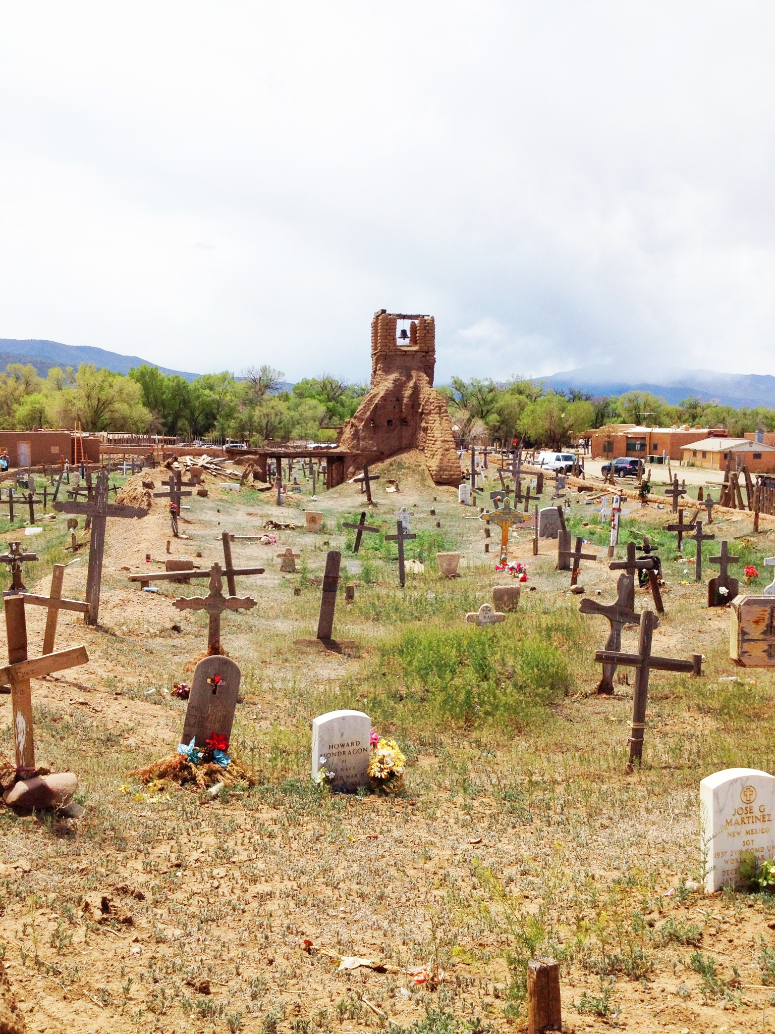 The old church. As the church was already a mass grave, the Pueblo continue to bury their dead on the site.