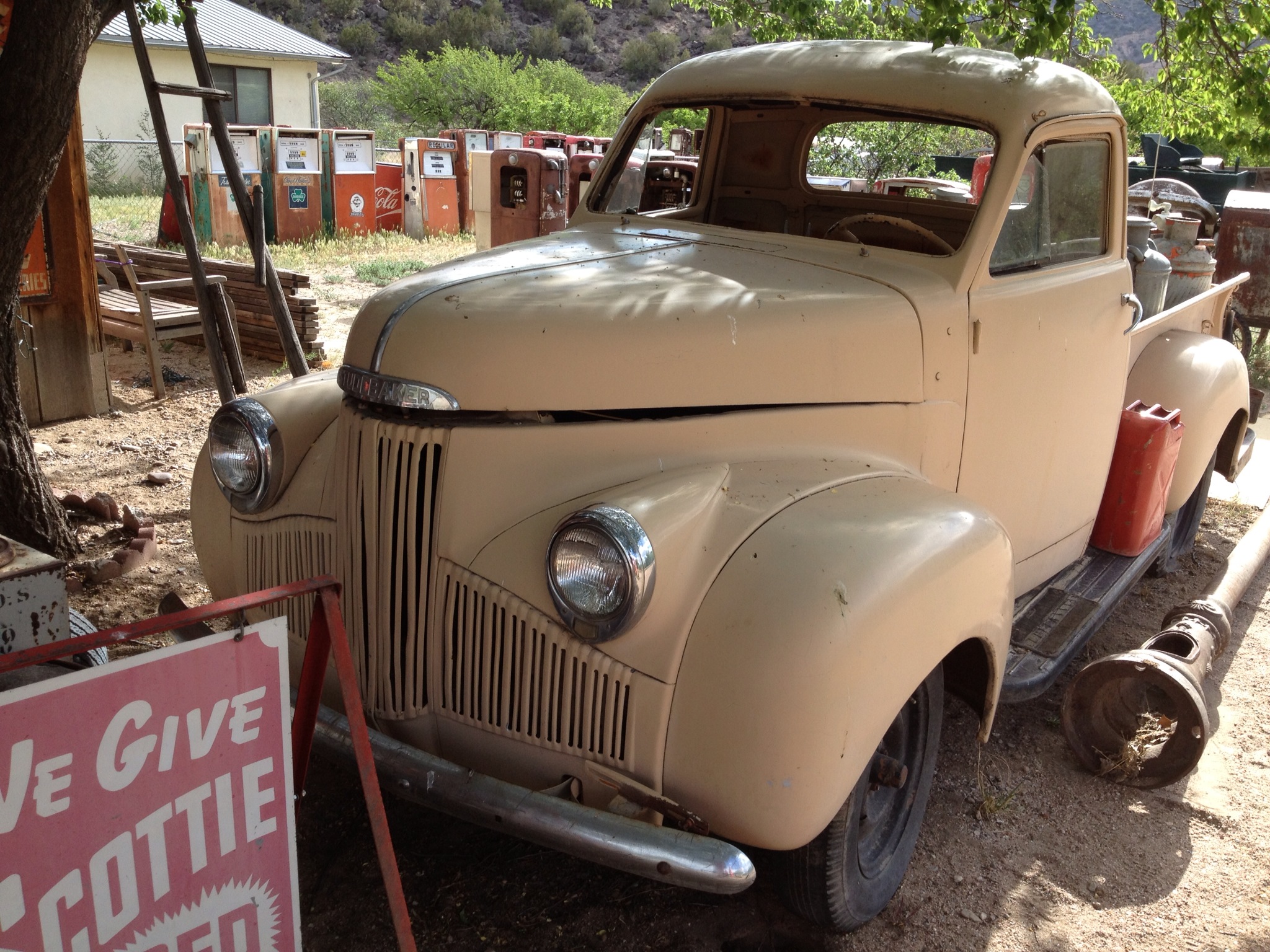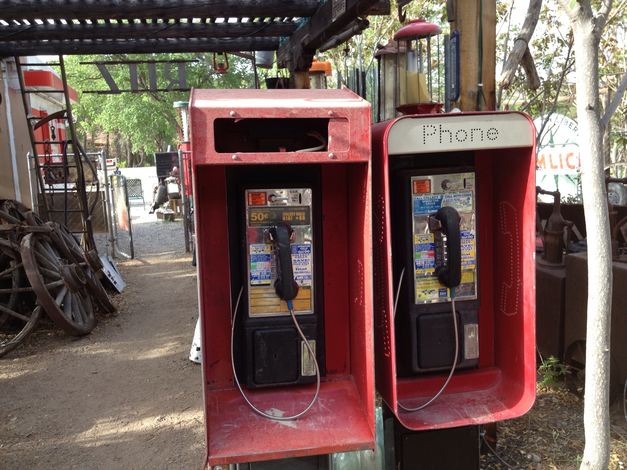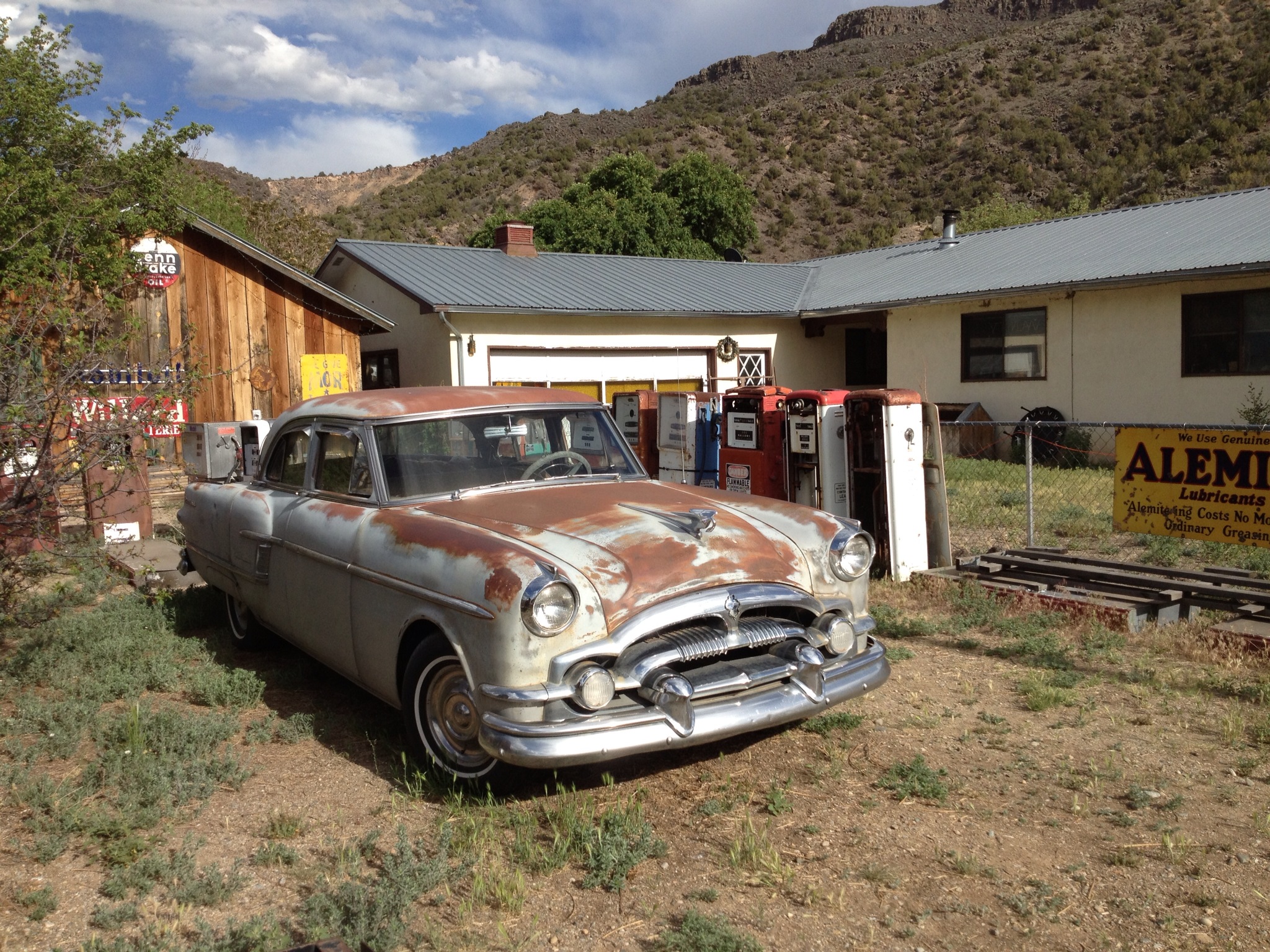 On the road south from Taos (Highway 68 in Embudo, to be exact) we had several times driven by an old tractor in front of a dilapidated building sporting the hand-painted words “Gas Station Museum”. As we sped by, I saw the yard filled with all sorts of…well, junk.