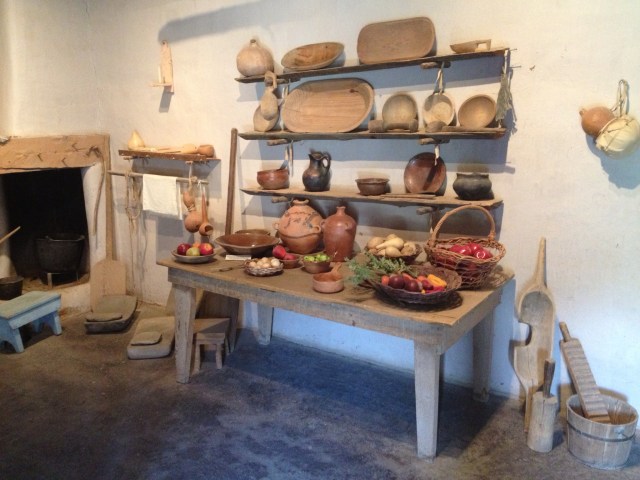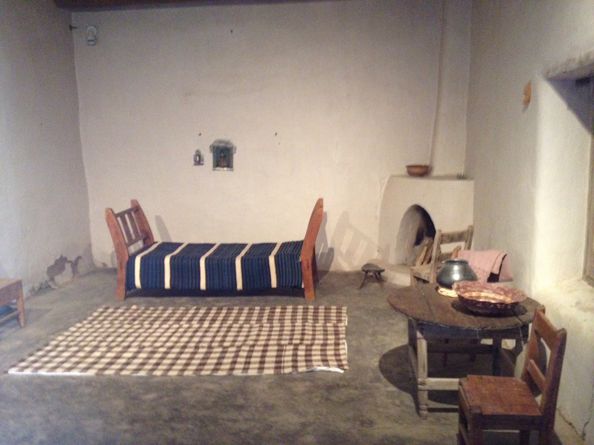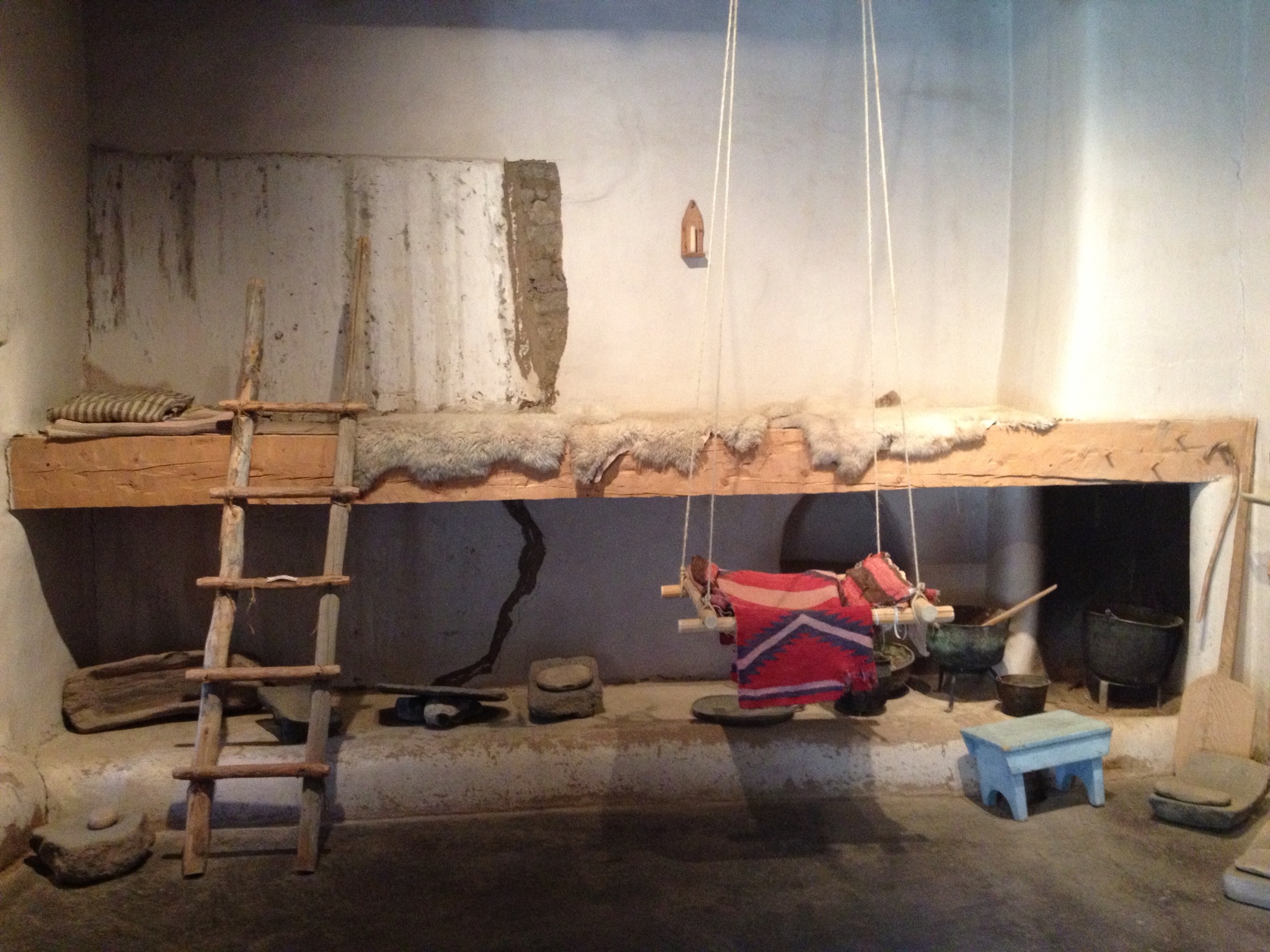 The master bedroom. Furniture was pretty precious in 1804 NM. As in: if you wanted a new table, first find a nice fat straight tree… Anything else had to be hauled overland from Chihuahua, through those same Comanches.