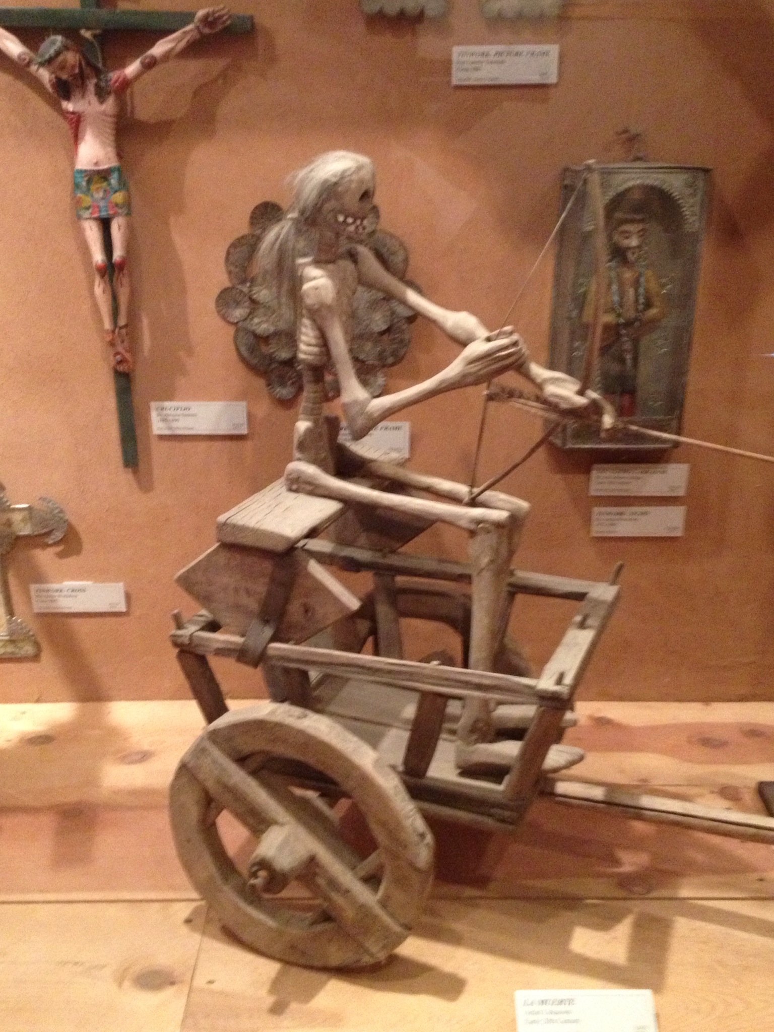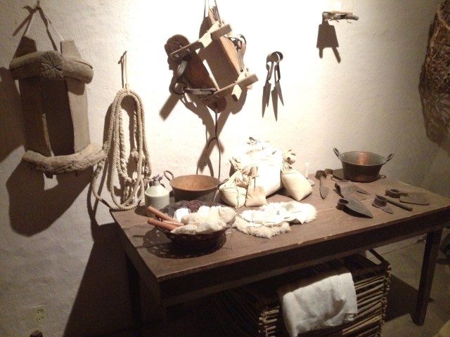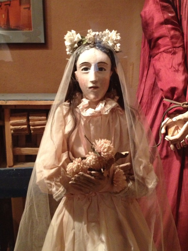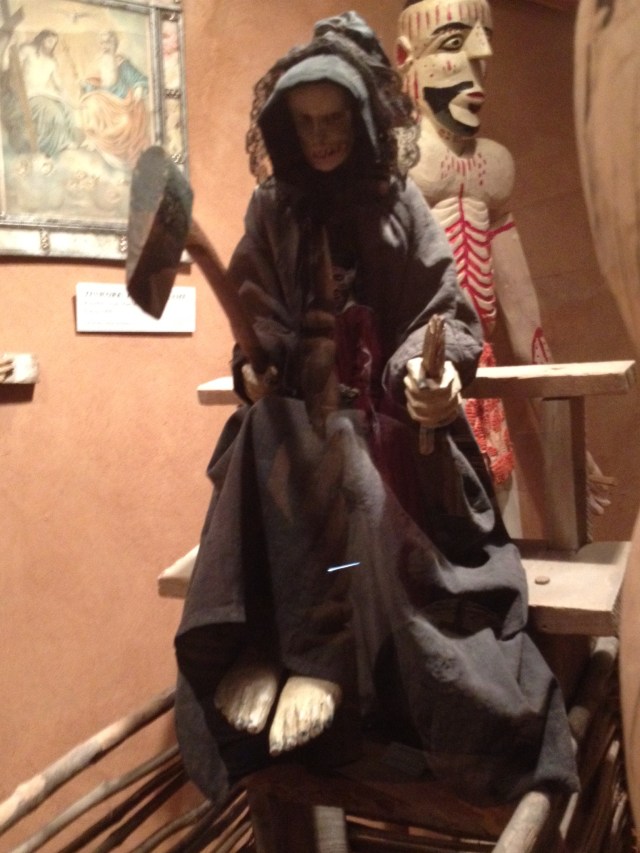 A display of religious figurines. The Mexican settlers lived their faith with an intensity that very few modern Catholics could understand. Life expectancy was about 45 years and those could be unrelentingly harsh years of cyclic famine, hostile attacks and plague-like diseases. I imagine that all that kept them going was the unquestioned belief that, if you followed all the rules and made God happy, you would be rewarded in heaven for all the earthly trials that God forced you to endure. I remember sister school operated a little like that.