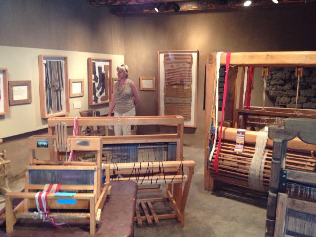 A weaving room full of relatively modern looms used for classes and demonstrations. Original looms didn’t survive. I would love the chance to watch someone weave one of those intricately designed tapestries. The artistry accomplished on primitive equipment in the early 1800s boggles the modern mind. At least it boggles mine.