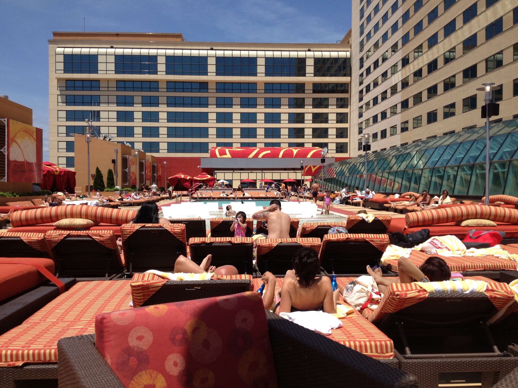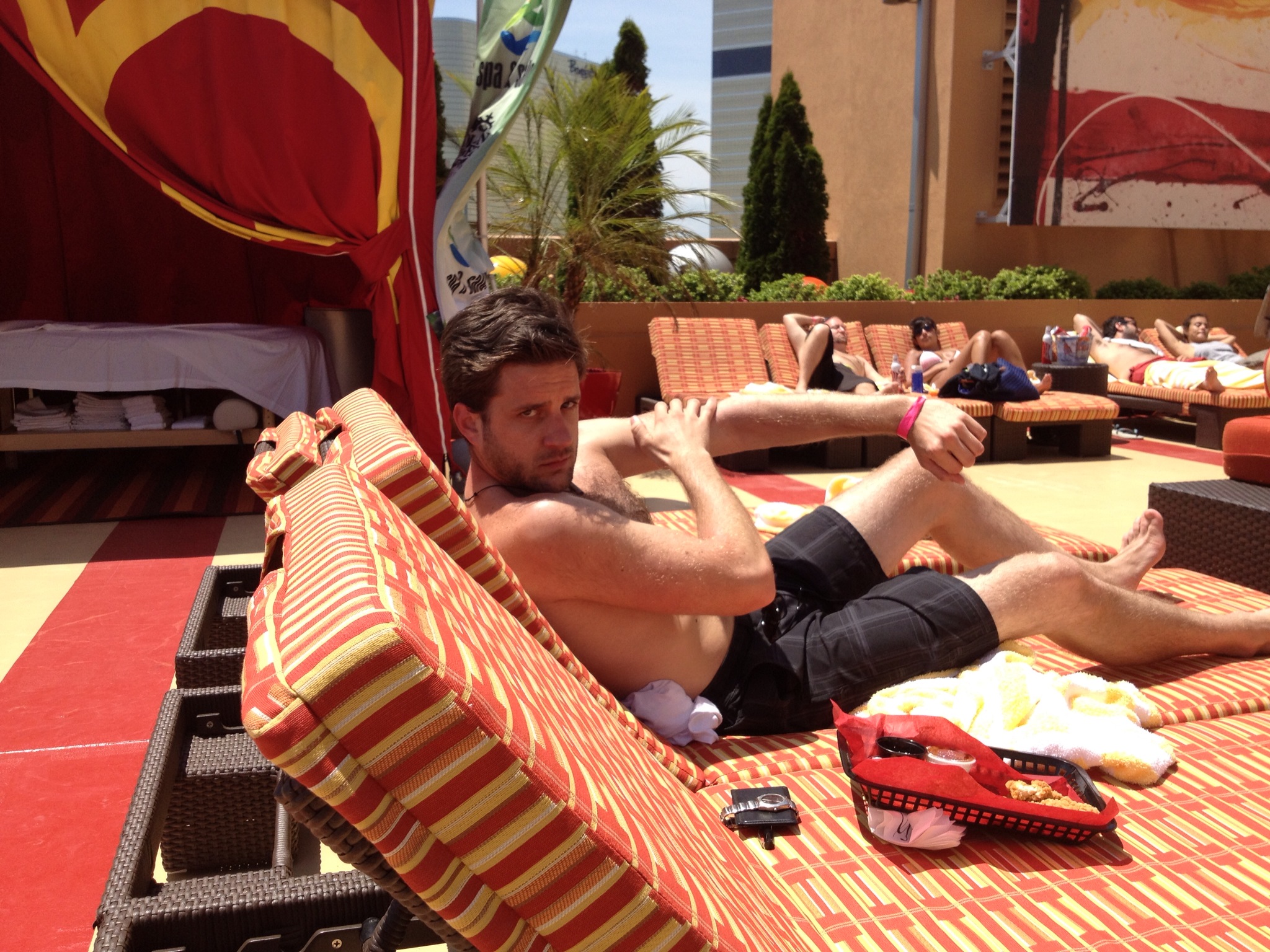 My enormous thumb hovers over the view from the rooftop pool. The marina is pretty nice with clean facilities and it’s home to the casino, about 8 restaurants, 5 clubs and 10 bars. At one of those bars, Doug and I were able to watch the Bruins bust the Pens 3-0 in game 1 of the Conference Finals. Sweet.
