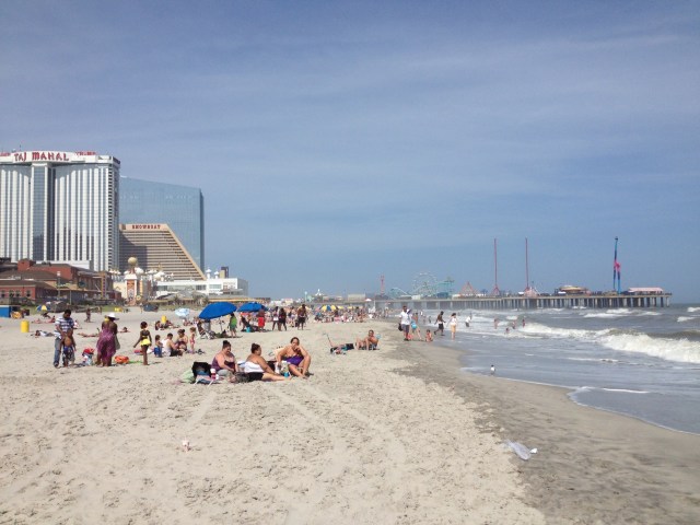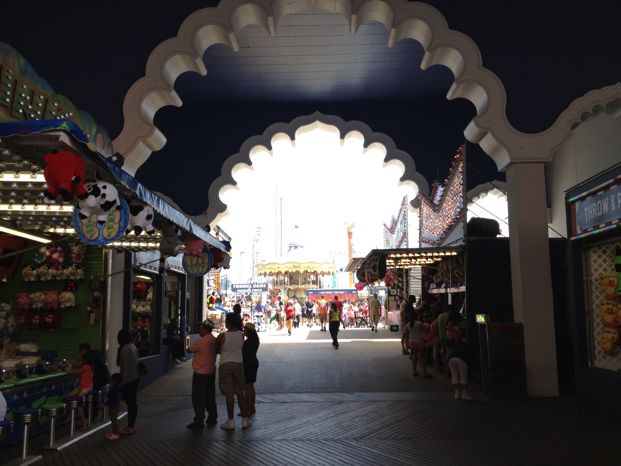 View of the Steel Pier. The Boardwalk is totally honky-tonk but a great place to people watch.