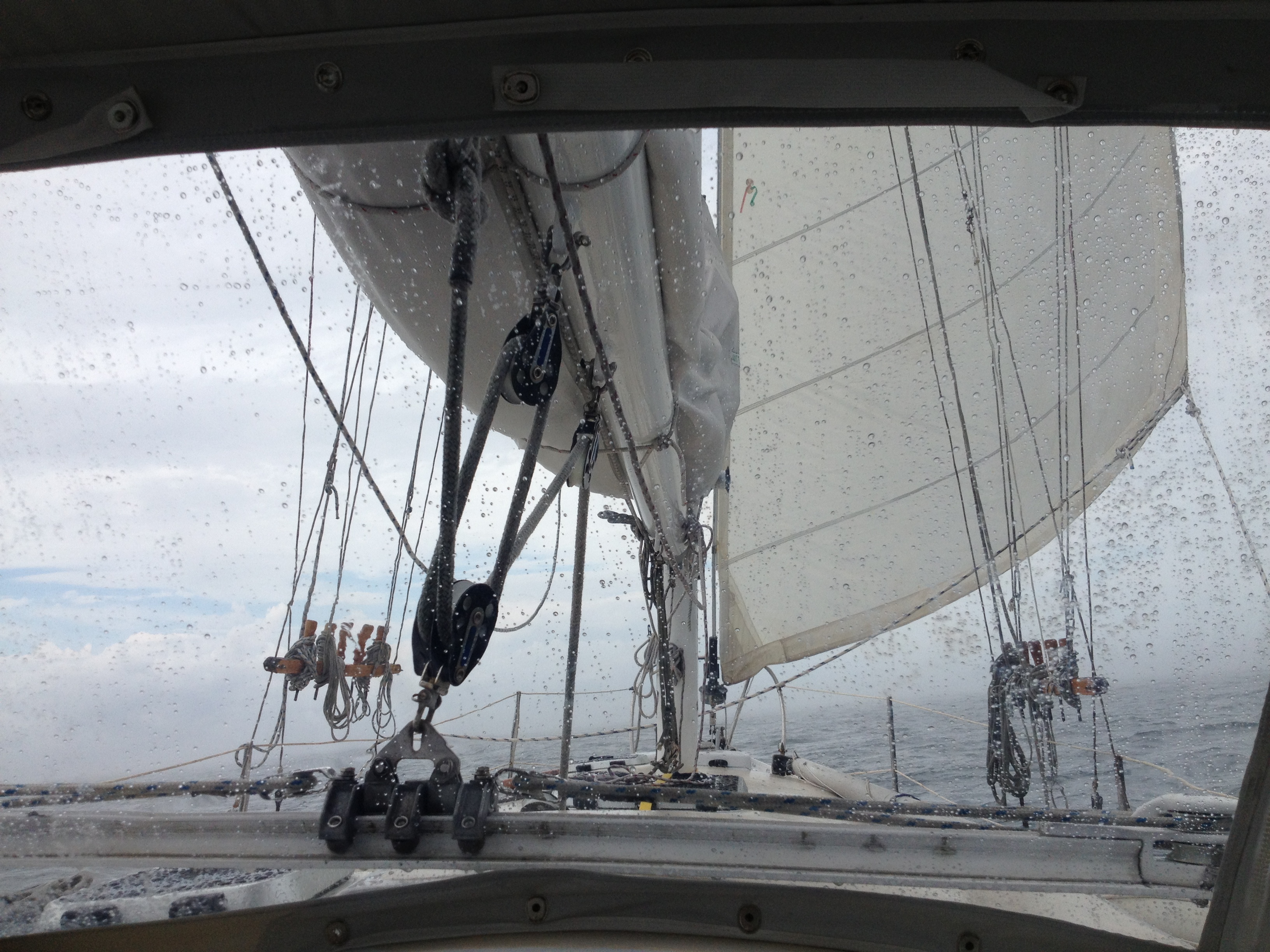 We left AC under power at 6:57am into a very choppy channel. The biblical torrents of last night mostly abated and it was only drizzling. After a rough, rolling 40 minutes the seas improved and we began heading north, about a mile offshore.
