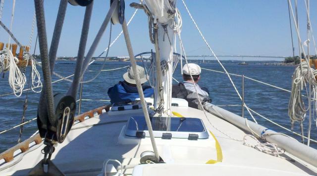 After some of the rough water we’ve seen, the feared Hell Gate was relatively calm, which Steve attributed to the slack tide. The sun was out, the breeze was behind us and the water ahead unobstructed when we decided conditions were finally right to sail.