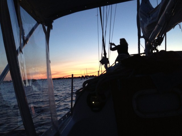 But a speed of less than 3 knots doesn’t cut it when most of the crew has to work Monday, so to stay on schedule, we had to put up the main sail.