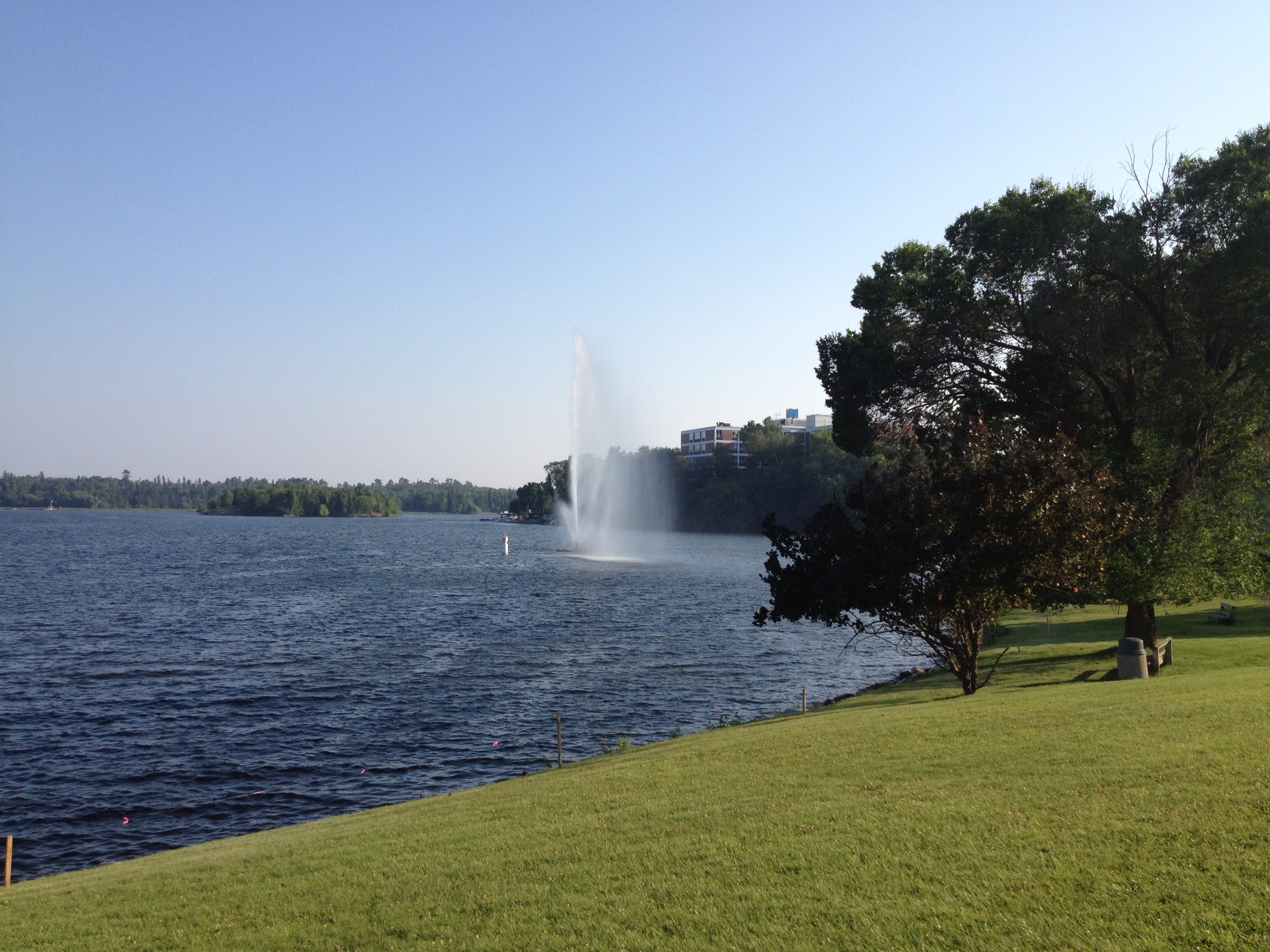 After about an hour, we have largely left the Canadian Shield, which somehow refers geologically to the semi-mountains that we just traversed, and entered the Great Plains, that part of the continent that is as flat as a pool table. This should hold until the Rockies appear in Alberta, which the map shows as just the other side of Saskatchewan, which is in turn just beyond Manitoba, which is our target for today.
