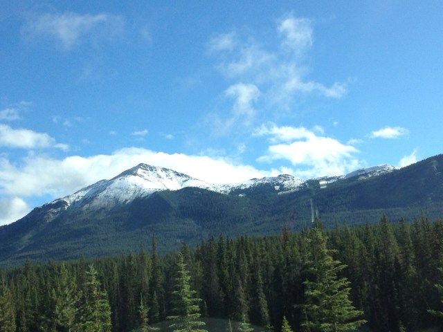 The route took us through Banff Nat’l Park ($8 senior rate S.V.P.) and was mostly 2 lanes each way and 90 kph. Several times we had to divert around road washouts at 40 kph due to the recent flooding here and in Calgary that almost cancelled the Stampede.