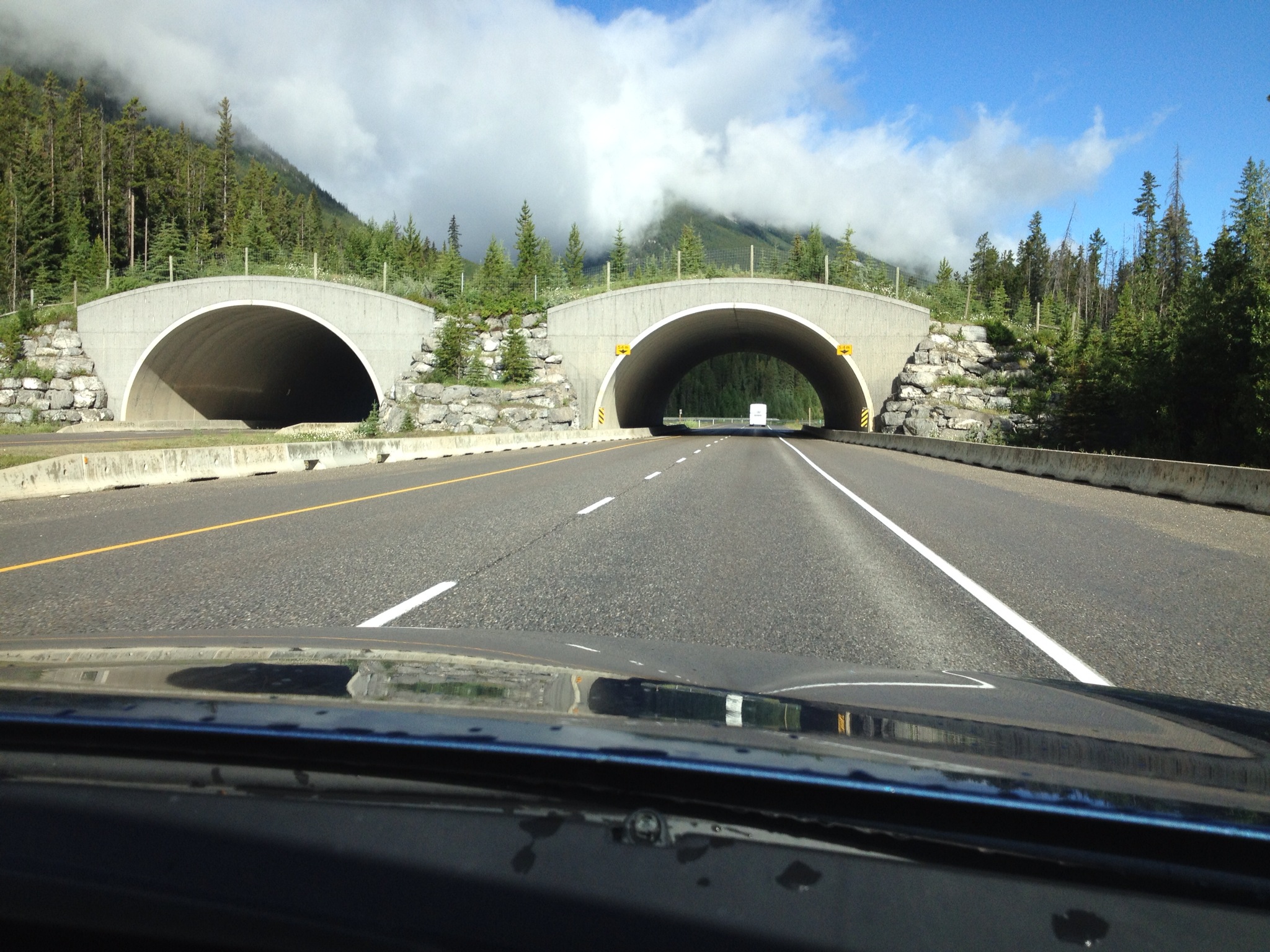 The park had high fences along both sides of the roadway that safely funneled the local animals to these elevated crossings. Anyway that’s what Joe and I hypothesized after passing under these elaborate bridges with grass and trees on top. They had one every five miles or so.