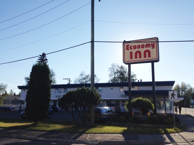 We finally arrived in Prince George, BC, about 5 pm, gassed up and hit the local Red Robin for dinner. While there, I called around to local cheap motels rated on Trip Advisor and settled on the aptly named Economy Inn.