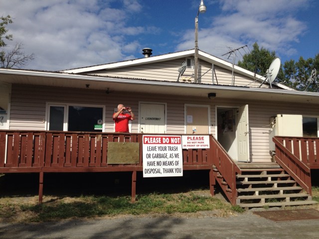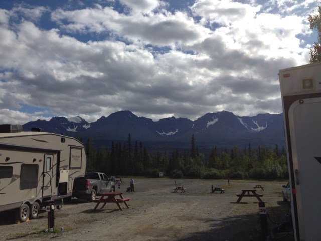 Here’s Joe capturing the scenery from the laundromat at an RV park in Haines Junction, YT.