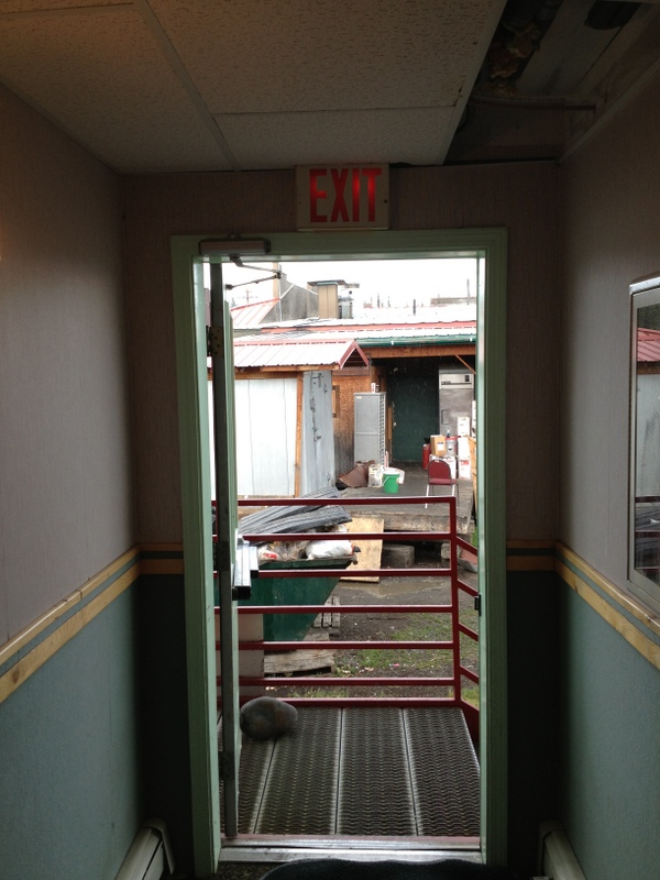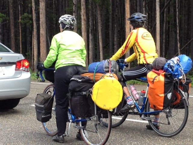 We saw loads of motorcycles on the road in AB, BC and AK. Young folks in brightly colored body suits on speedy looking Euro-bikes are slightly outnumbered by baby boomers on giant Harleys and Japanese retro-cruisers pulling little trailers. Everyone is wearing gear allowing them to plow ahead no matter how wet, windy and miserable the weather might be. Evidently ass-less leather chaps are not just a social signal but also an acceptable motorcycle accessory (or we were just totally misreading those two guys in the lobby).