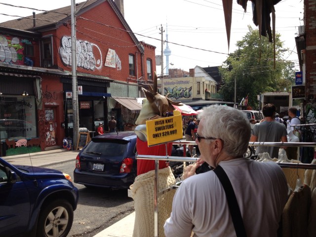 Andrew was totally in his element, poring over the clothing racks until he bought a military surplus shirt. Rich and I stayed outside to people watch.