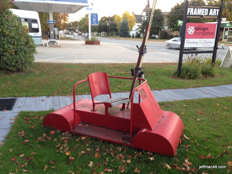 A Mt. Cranmore ski train car. We saw several of them decorating lawns and businesses all over town. These iconic relics were replaced with a modern ski lift many years ago.