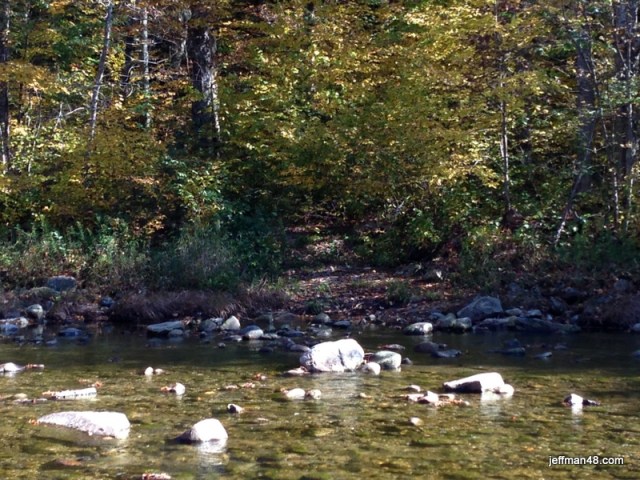 We believe we found the campsite about 1,000′ west of Cobble Hill Trail, just before the bridge where the Ammonoosuc crosses the highway from south to north. It was in about the right place.