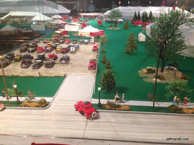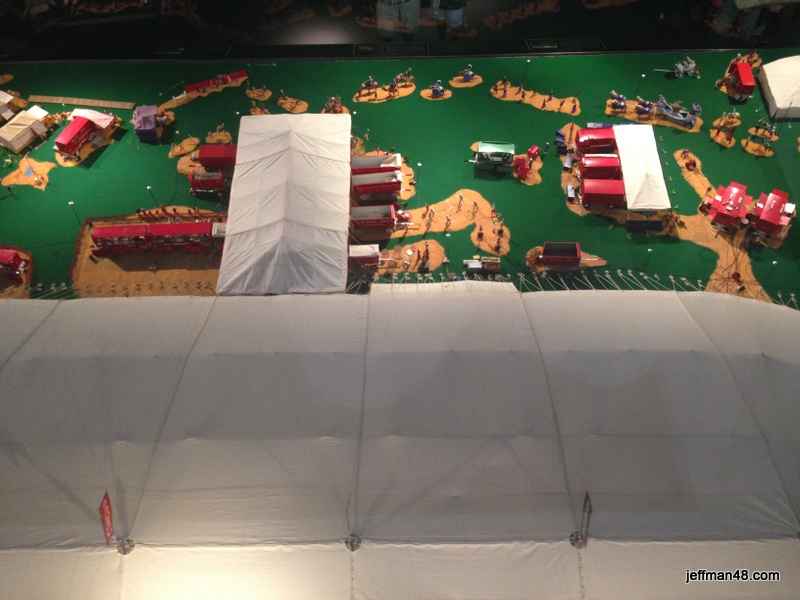 Looking at the spectators behind the glass to the left and right will give an appreciation of the size of the model. This is about one eighth of the total presentation.