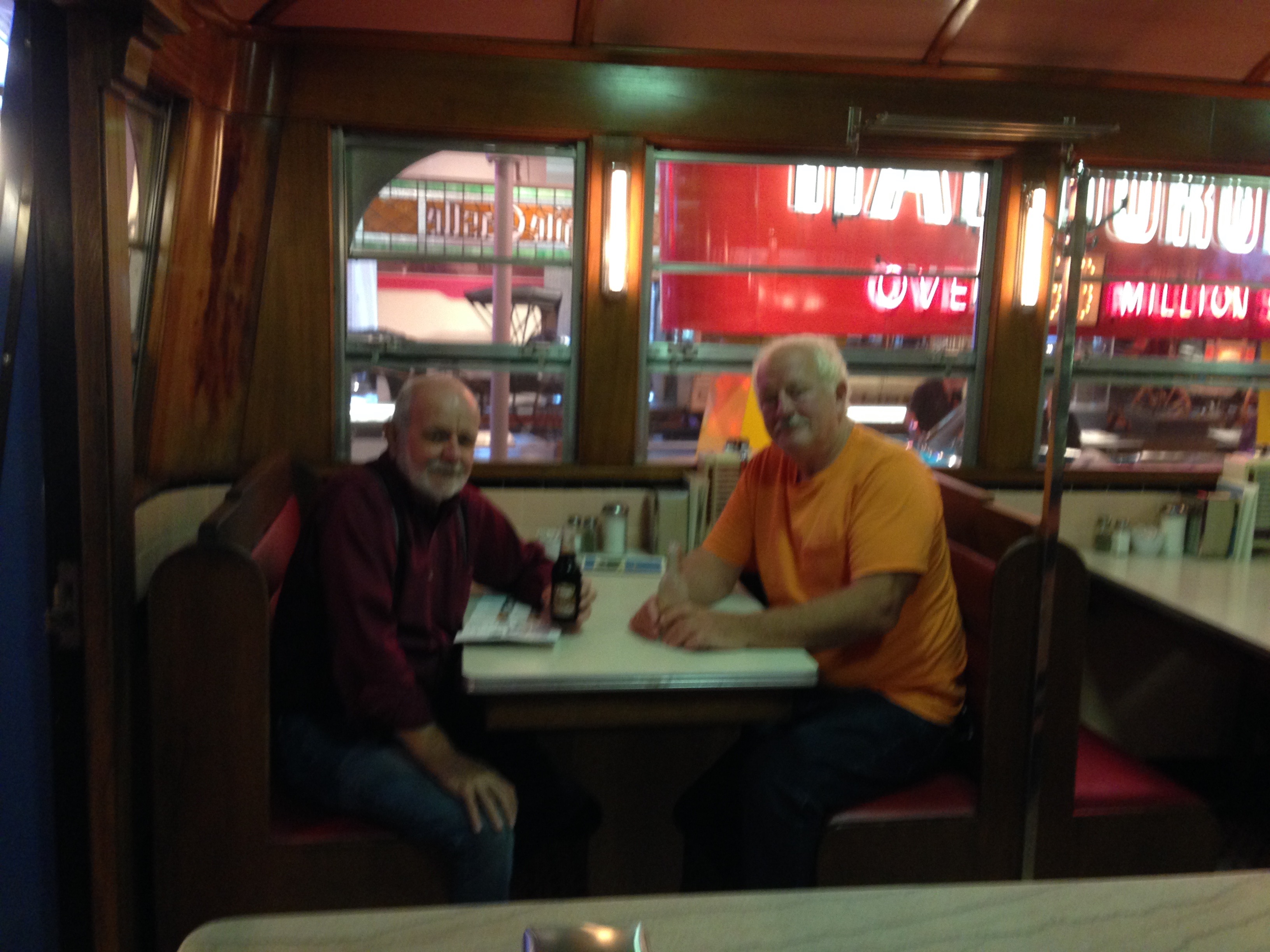 A pastiche of old roadside restaurant signs stood in front of Lamy’s, a working diner from the streets of Detroit. We had lunch there.