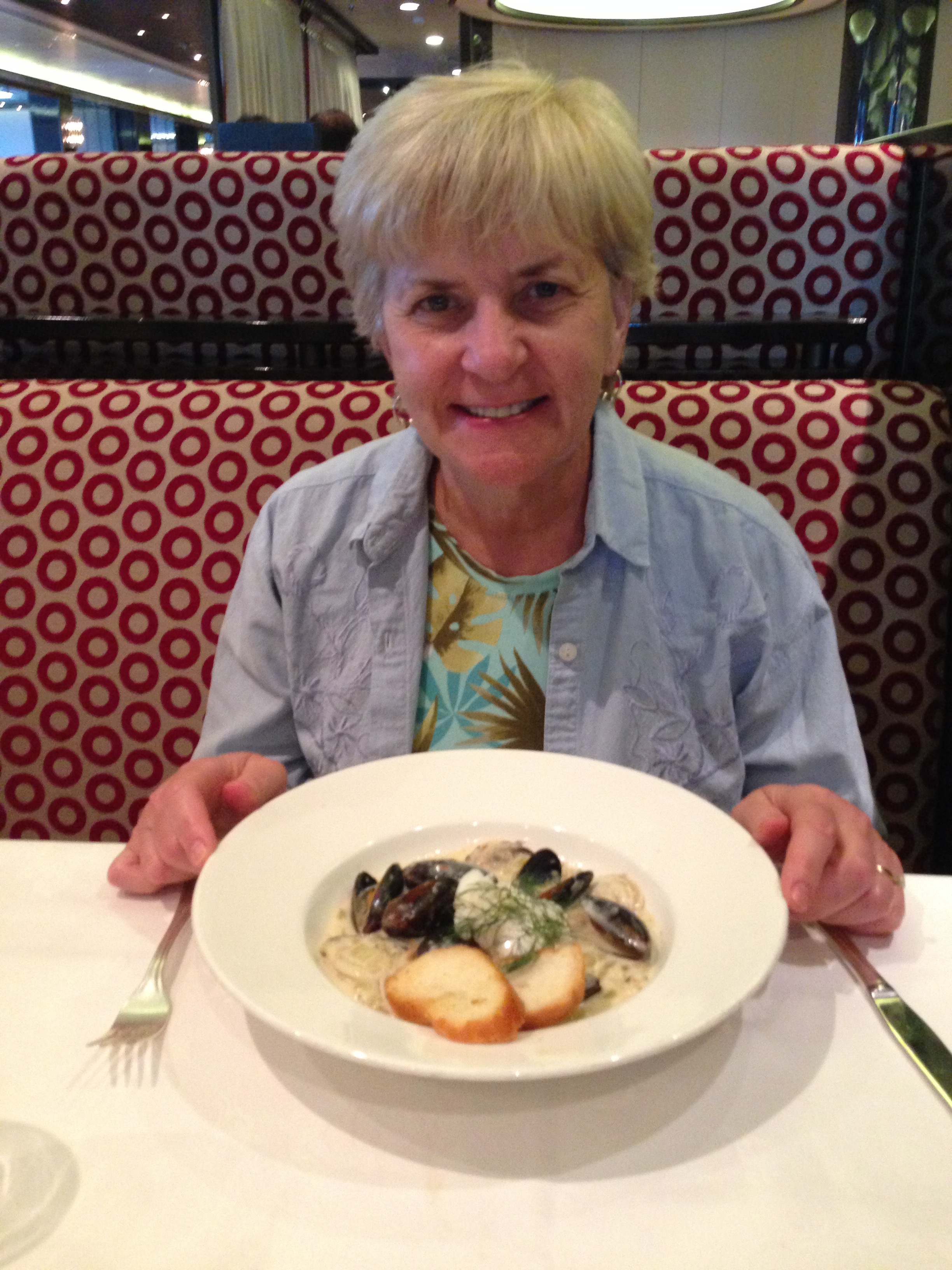 Next came our 6:30 seating for dinner in the Allegro Dining Room where we met Sebastian, our waiter and Royal, our sub-waiter. Two nice guys from India who couldn’t do enough for us. We sat next to Jen and Dave from Iowa who also seemed to be nice people.