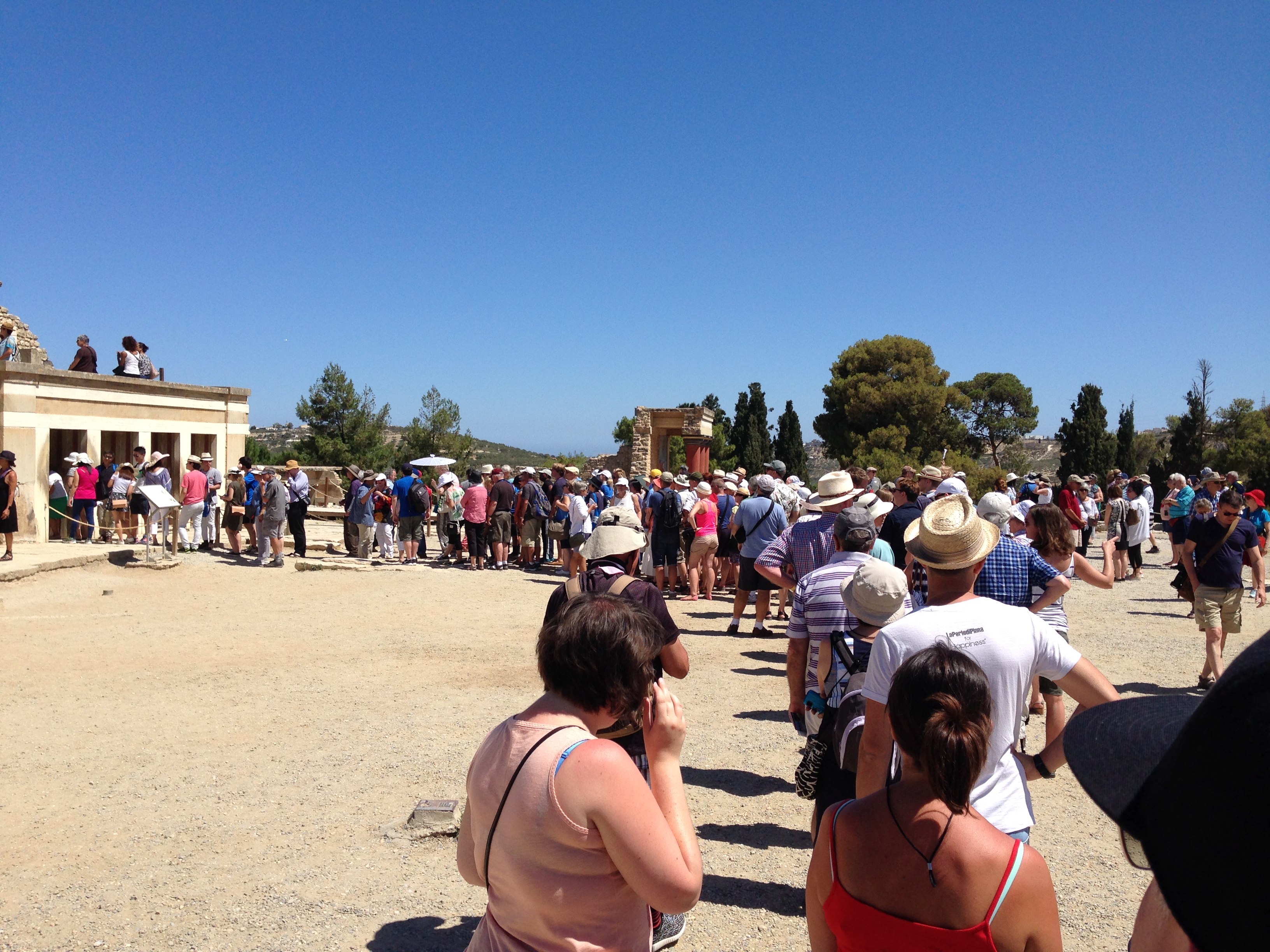 Sometimes the lines in the hot sun could be a bit too long and we would bypass certain sights. Eventually, we had seen everything and clambered aboard our air conditioned bus for the ride to Elounda, a small picturesque fishing village where we were promised a Greek lunch.