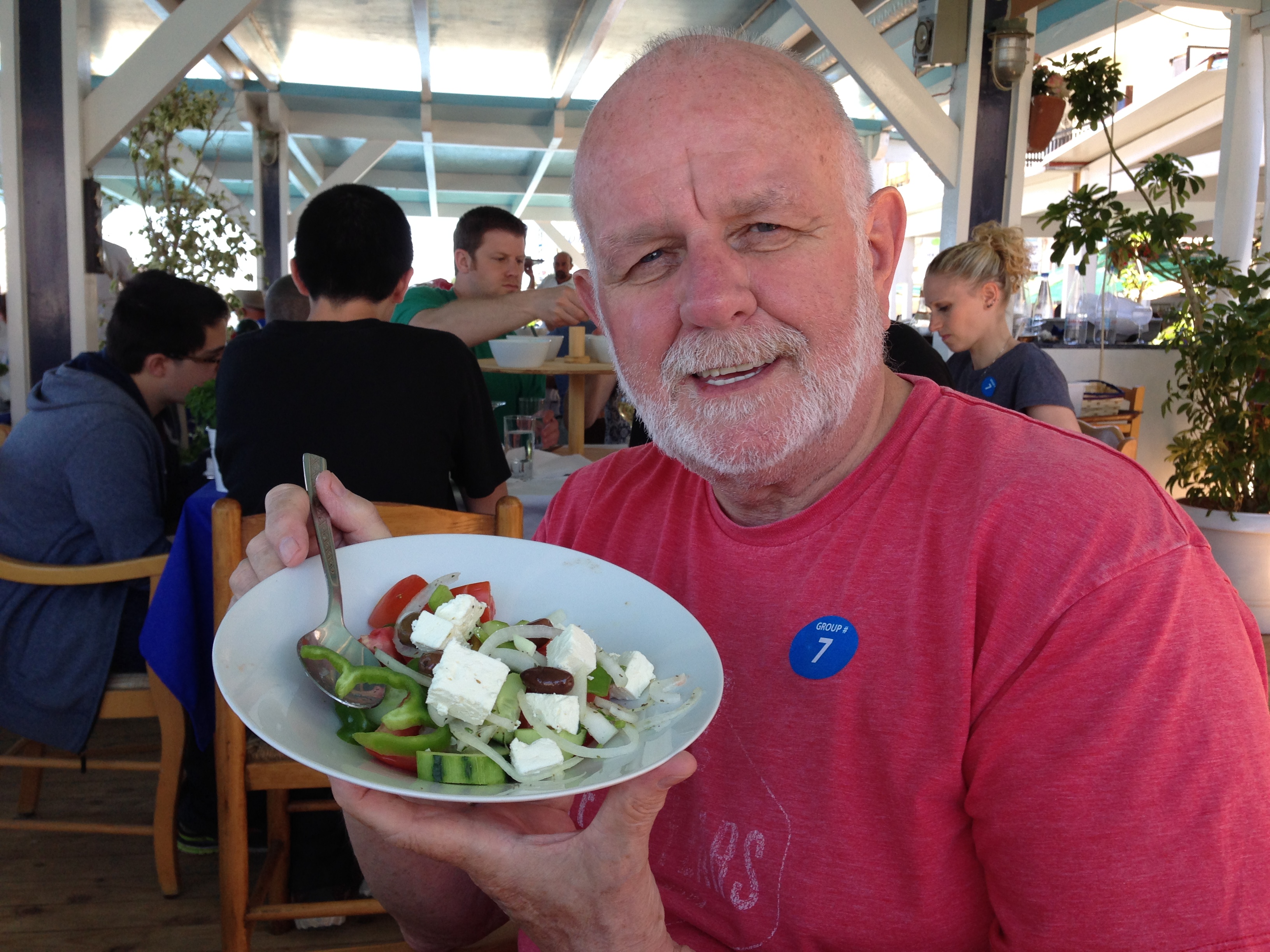 I had the first of so many Greek salads! It was delicious. Bus Blue #7 was by far the best bus; we were prompt, attentive, hungry and somewhat better looking than the others.