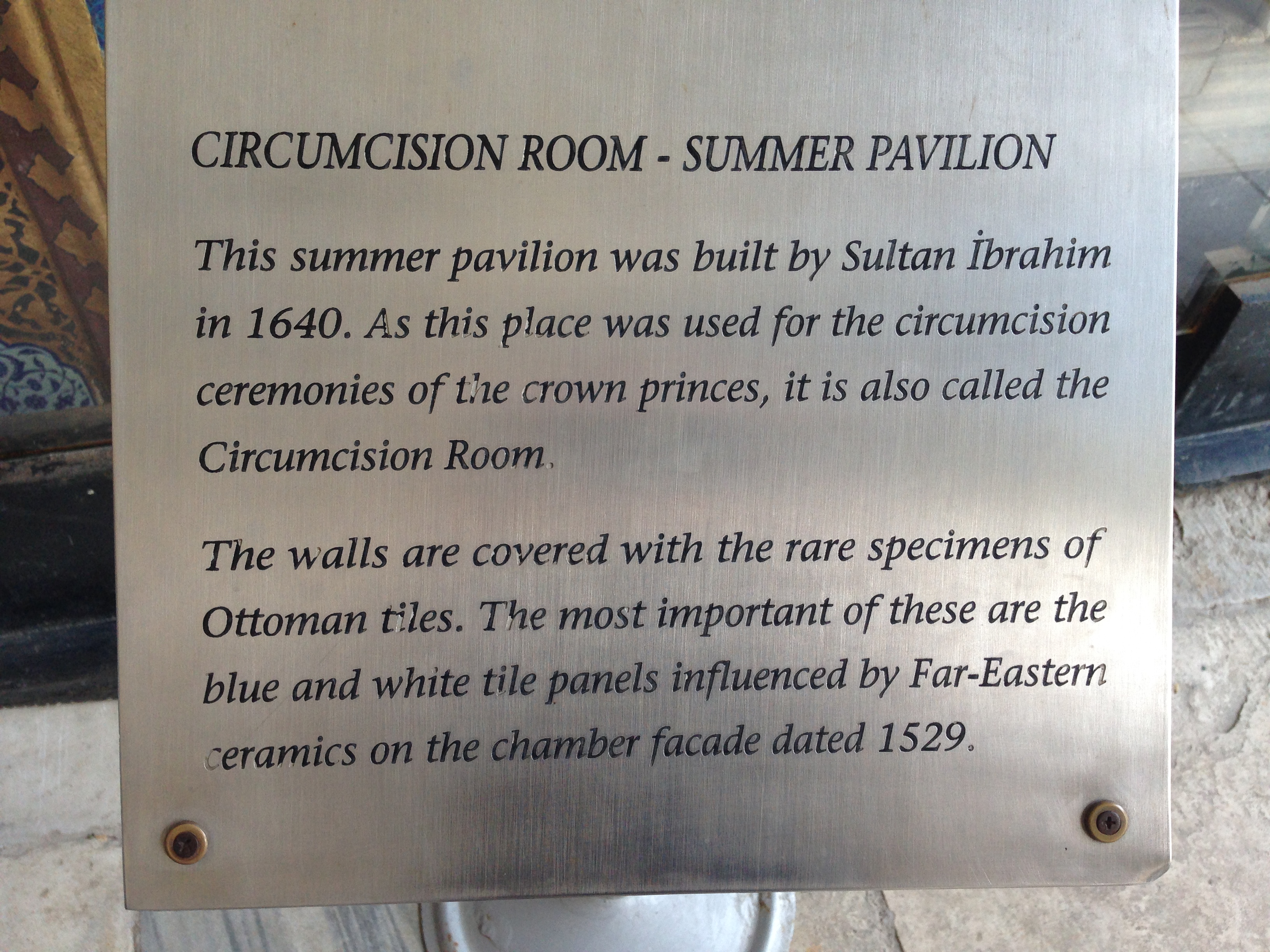 Outside was a Summer Pavilion the Sultan used for breaking Muslim holy day fasts.