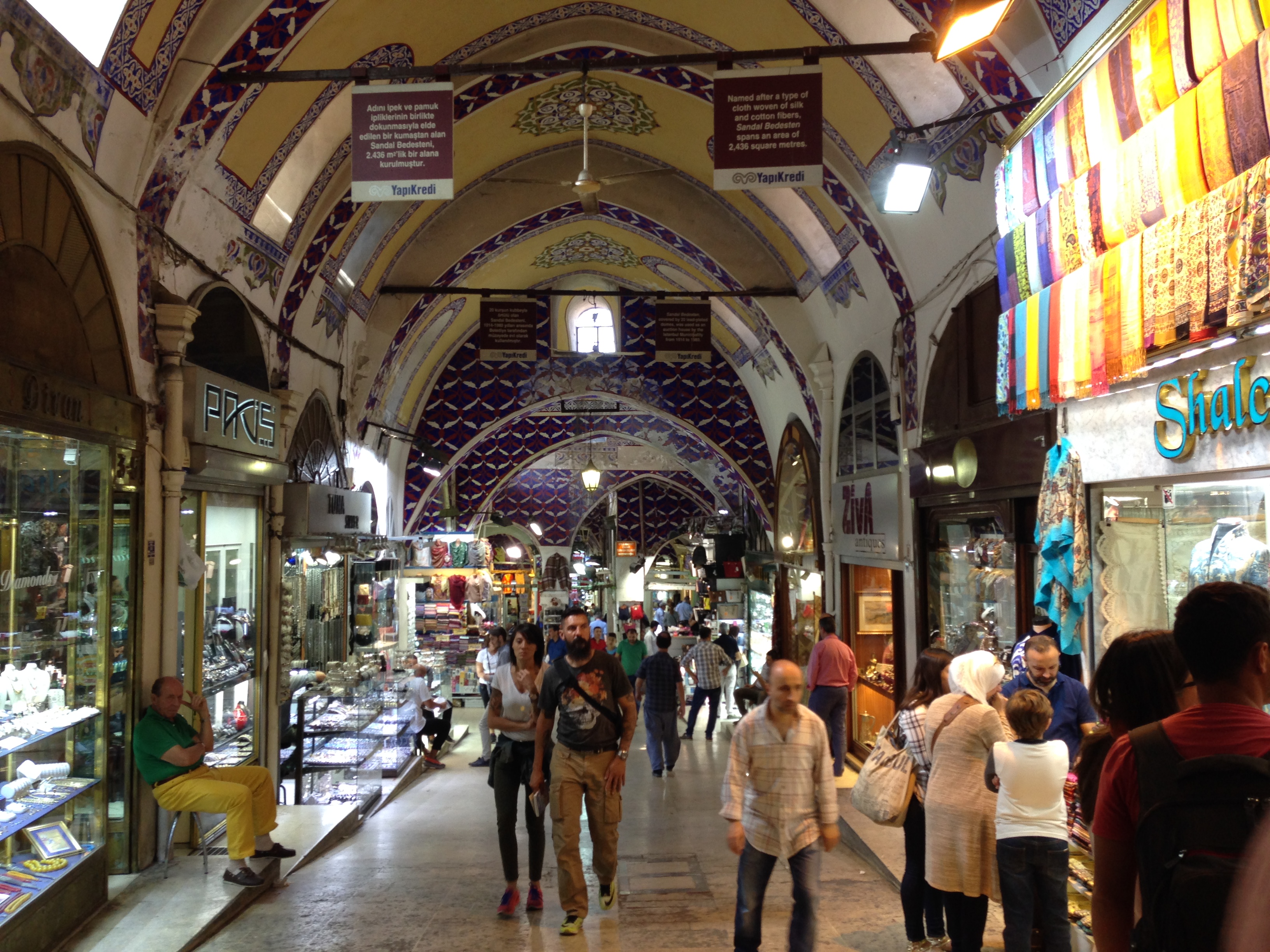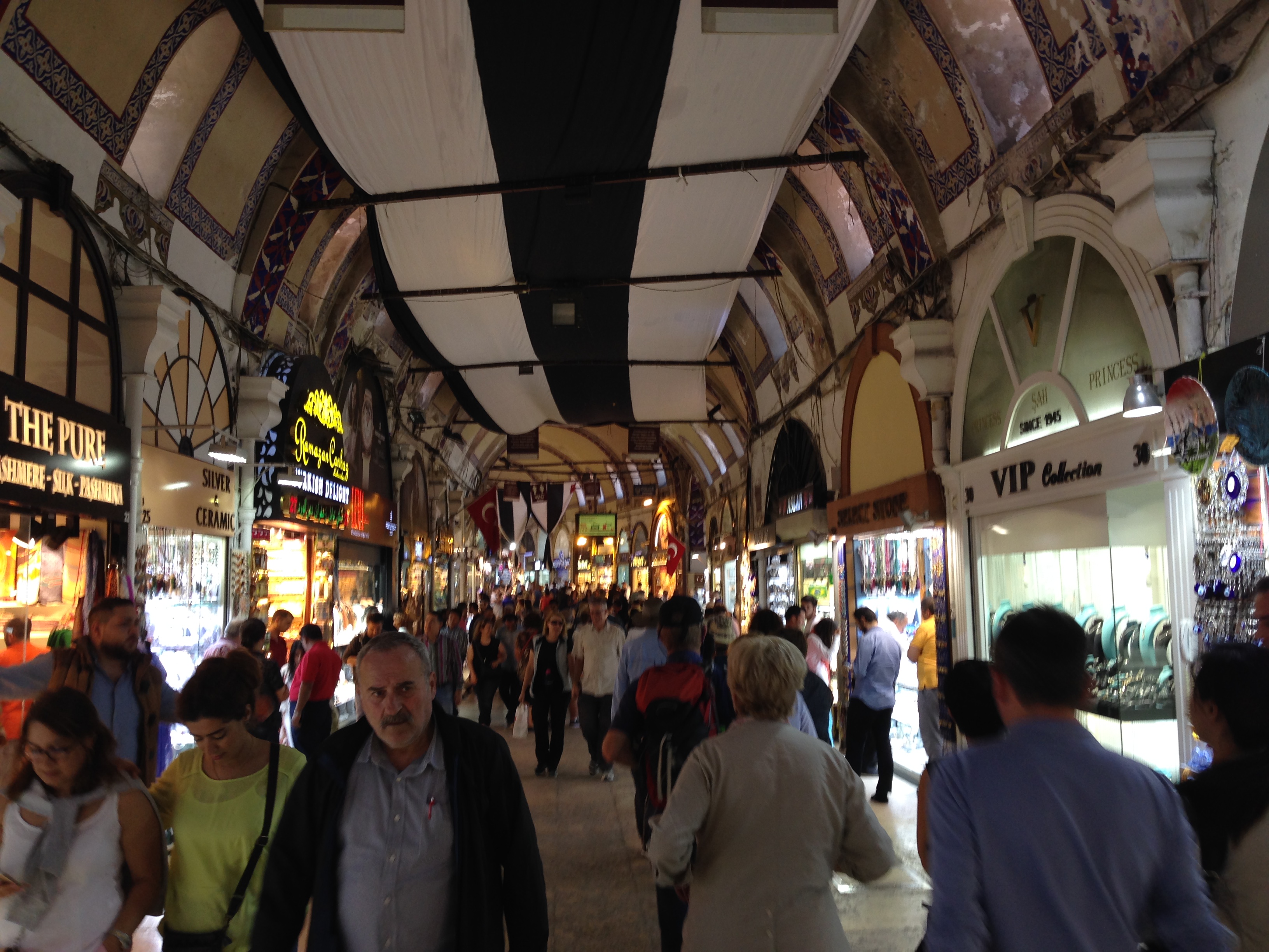 From Wikipedia: “The Grand Bazaar in Istanbul is one of the largest and oldest covered markets in the world, with 61 covered streets and over 4,000 shops which attract between 250,000 and 400,000 visitors daily. In 2014, it was listed No.1 among world’s most-visited tourist attractions with 91,250,000 annual visitors. The Grand Bazaar at Istanbul is often regarded as one of the first shopping malls of the world.”