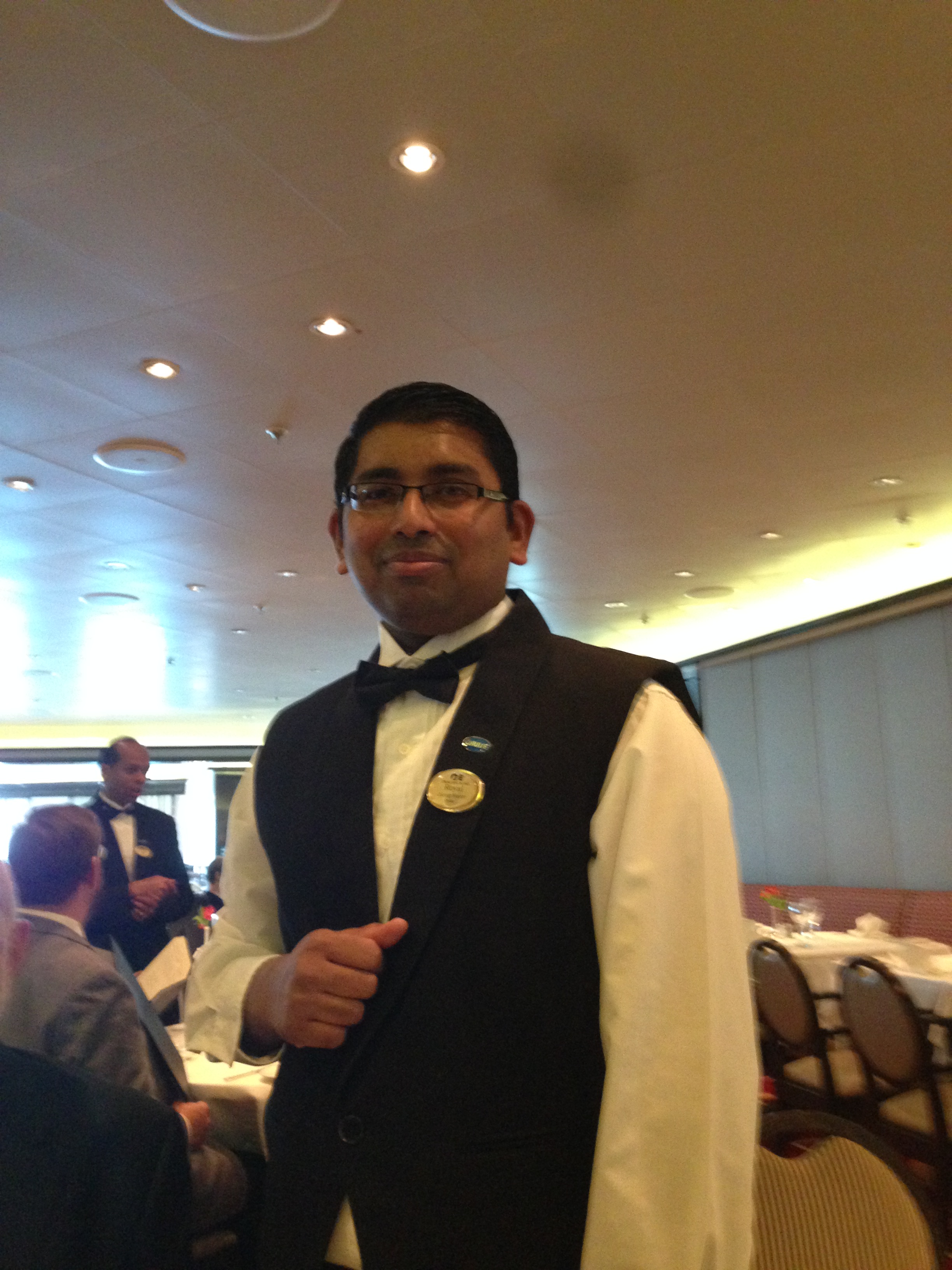 Royal, our assistant waiter greeted us. He is from India and hopes to be promoted to waiter soon.