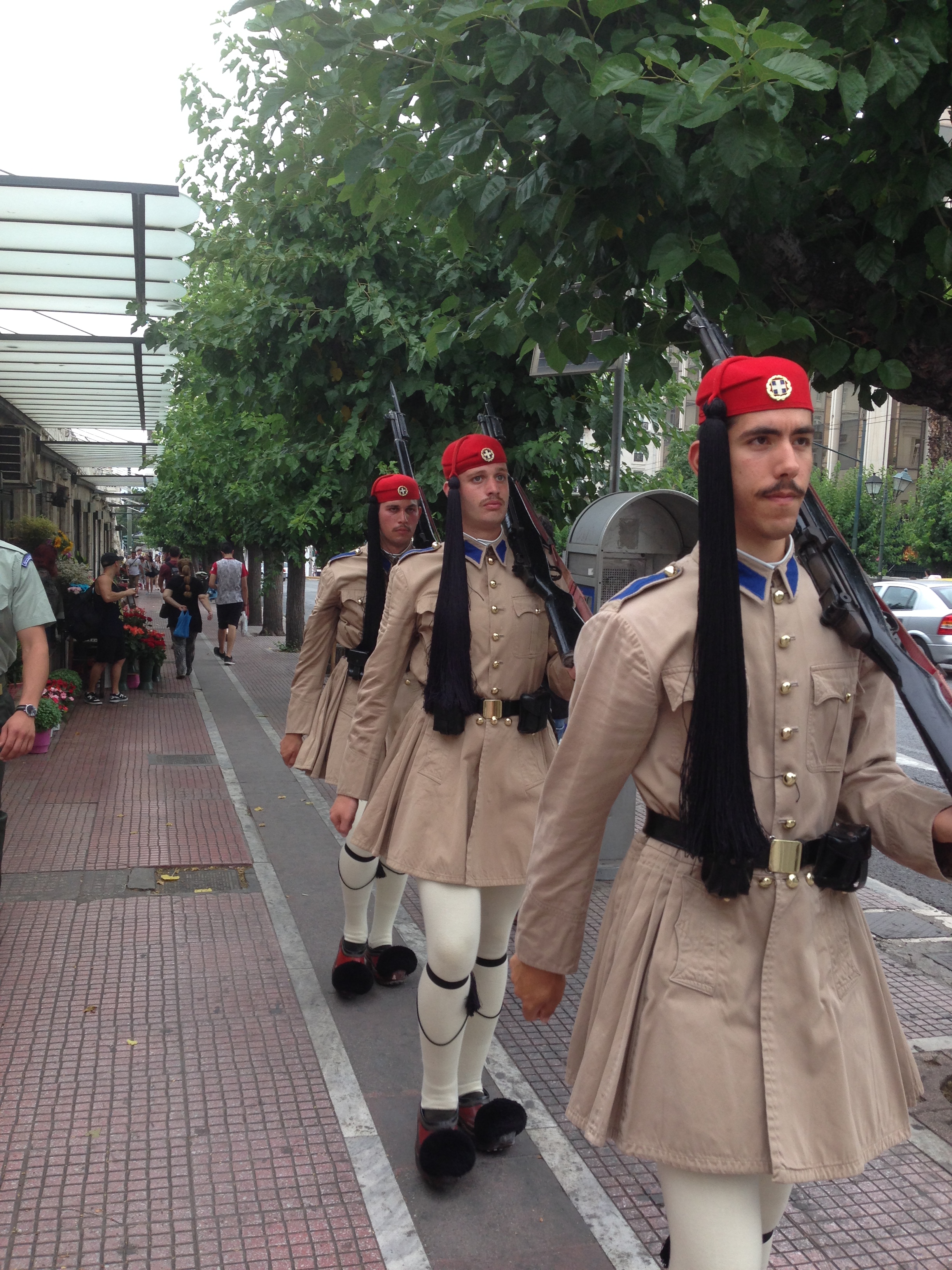 As we were leaving the museum, we heard the tramp of boots coming from the direction of the Parliament. We walked out to the sidewalk in time to see this.
