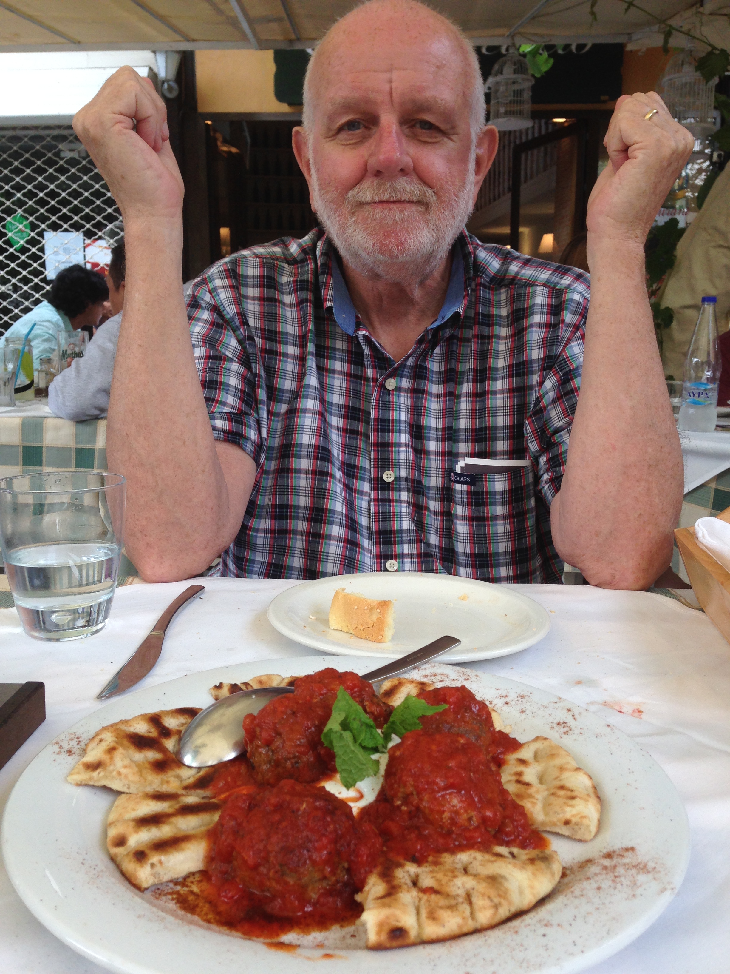 IMG_4902 Greek meatballs. They tasted even better than they look. Of course, we started with a Greek salad for two.