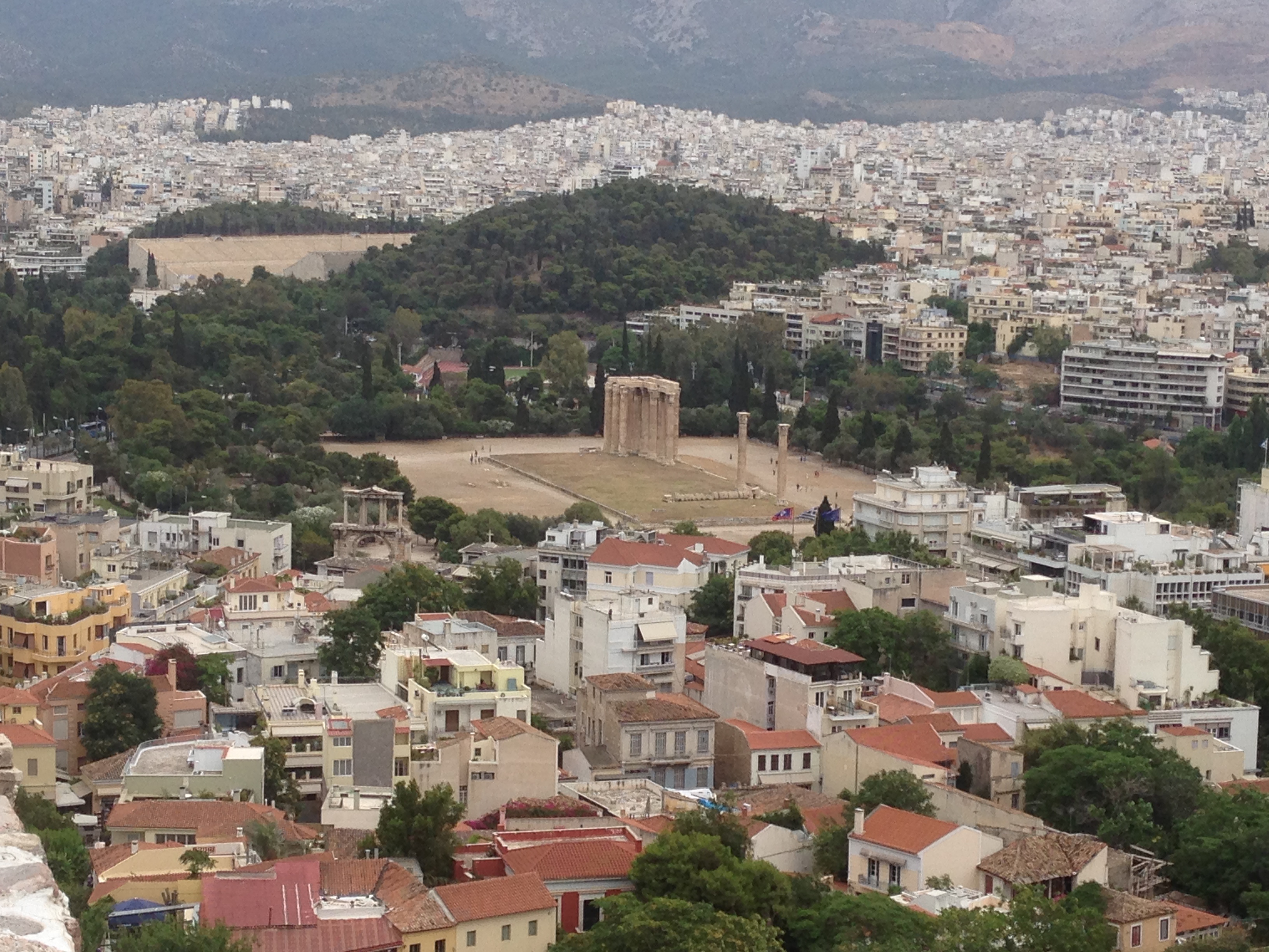 IMG_4925That’s the remains of the Temple of Olympian Zeus in the center and the Arch of Hadrian can be seen slightly to the left.